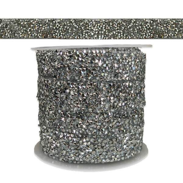 Fita de Strass Termocolante em resina 20 mm Prata - Por Metro
