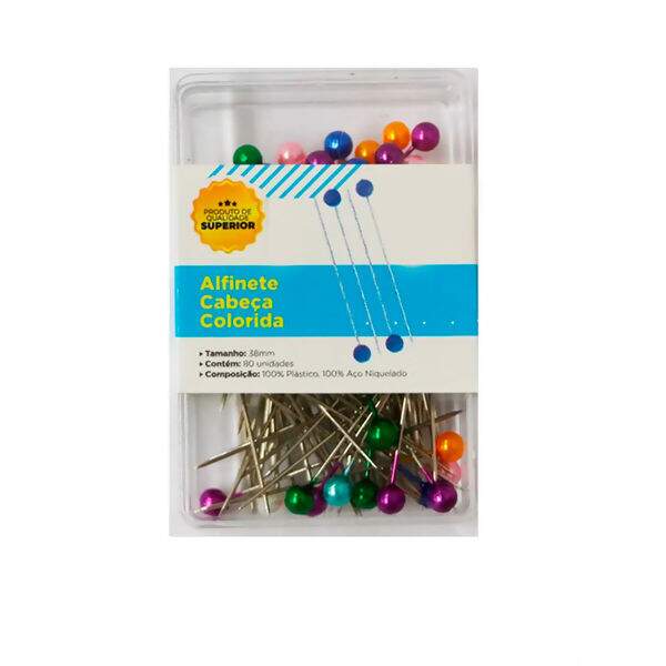 Descrição Alfinete de Cabeça Colorida - 80 un