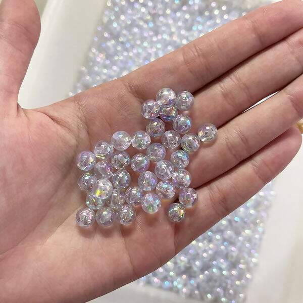 Produzida em ABS , a bola translucida irizada é ideal para montagem de bijuterias, trabalhos em chinelos, porta guardanapo, aplicação em tecidos, vestidos, lembrancinhas e artesanatos em geral.
