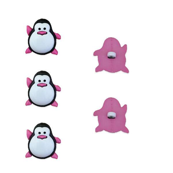 Botão de pezinho - Pinguin Rosa - Pacote com 8 unidades