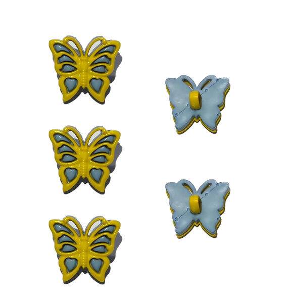 Botão de pezinho Borboleta Amarela e Azul - 8 unidades