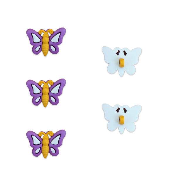 Botão de pezinho - Borboletas Amarelo e Roxa - Pacote com 8 unidades