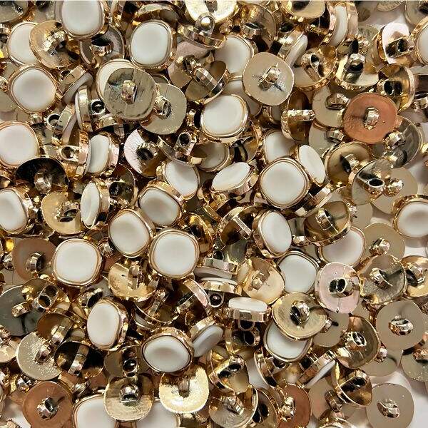 Botão de Pezinho Branco com Dourado 15 mm - 20 unidades