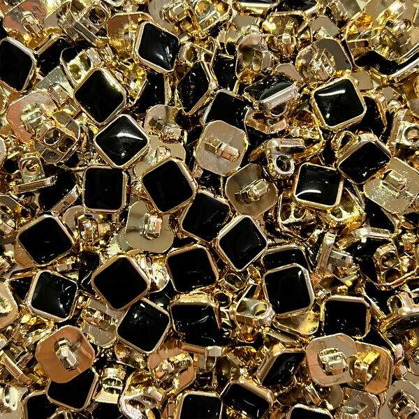 Descrição Botão de Pezinho Preto com Dourado 13 mm - 20 unidades