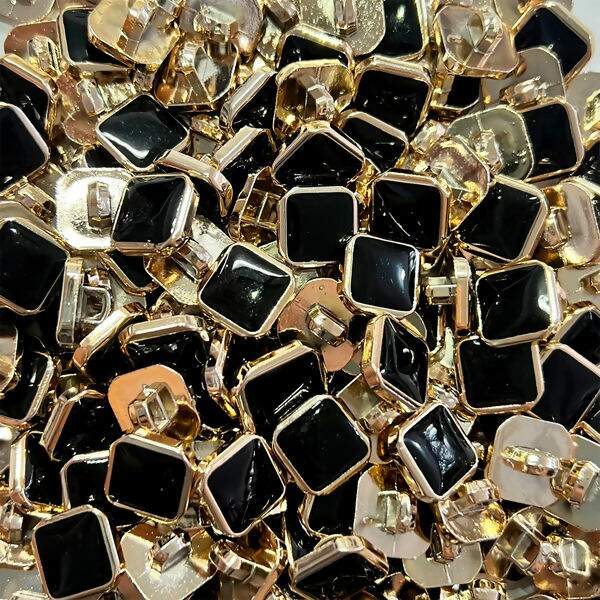 Botão de Pezinho Preto com Dourado 15 mm - 20 unidades