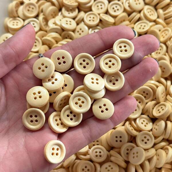 Botão Efeito Madeira Marfim 4 furos 15 mm - 20 unidades