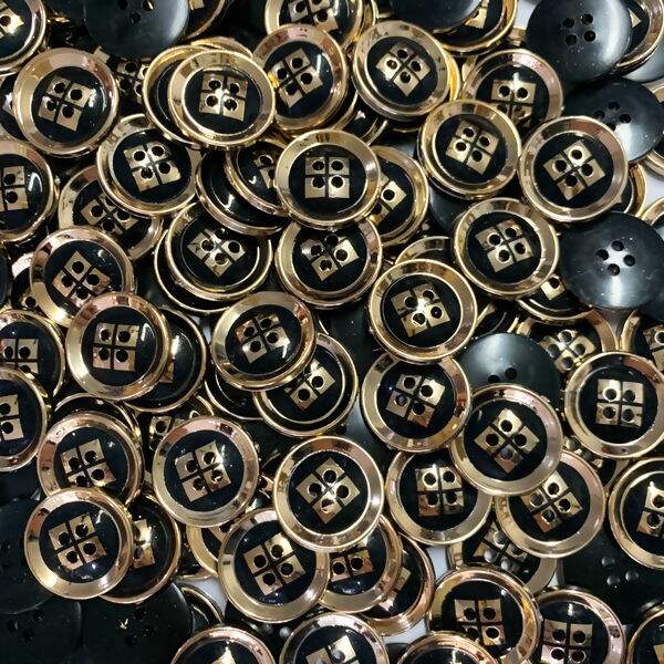 Botão 4 Furos Preto e Dourado II - com 20 unidades.