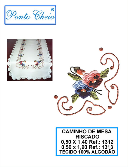 Caminho de Mesa com Risco para Bordar - Amor Perfeito Selecione o Tamanho