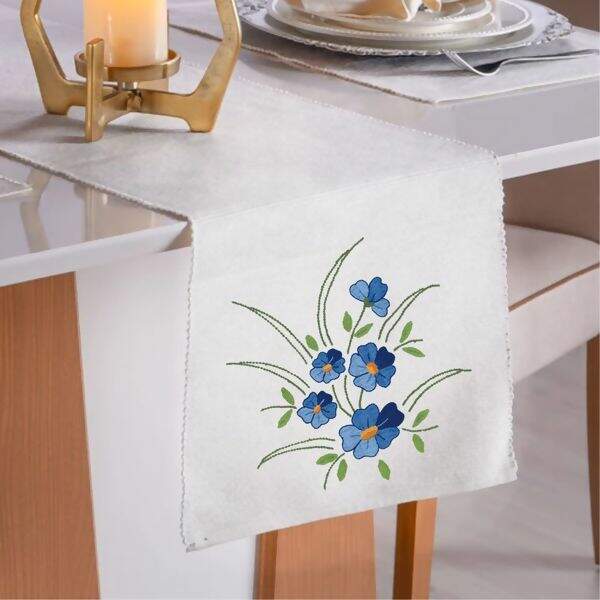 Descrição Caminho de Mesa com Risco para Bordar - Flor Azul