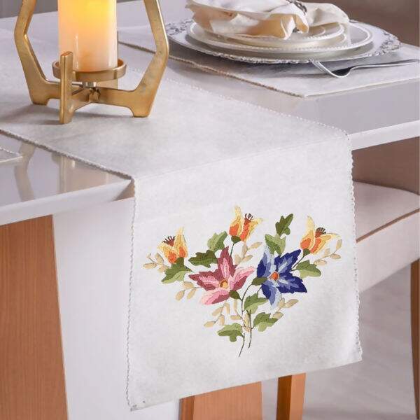 Descrição Caminho de Mesa com Risco para Bordar - Flores