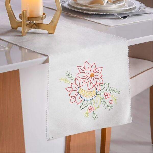 Caminho de Mesa Riscado para Bordar Bola de Natal Des.07 Selecione o Tamanho
