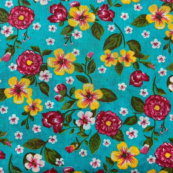 Chita de Flor Amarela e Vermelha Fundo Tifany