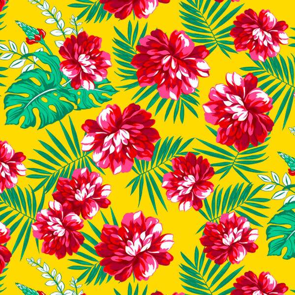 Chita - Flores Vermelha e Rosa fundo Amarelo Cor 1 - Des.2825