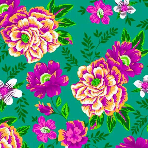 Descrição Chita - Flores Magenta e Amarelo fundo Verde Cor 2 - Des.2838 - 1,00x1,40mt