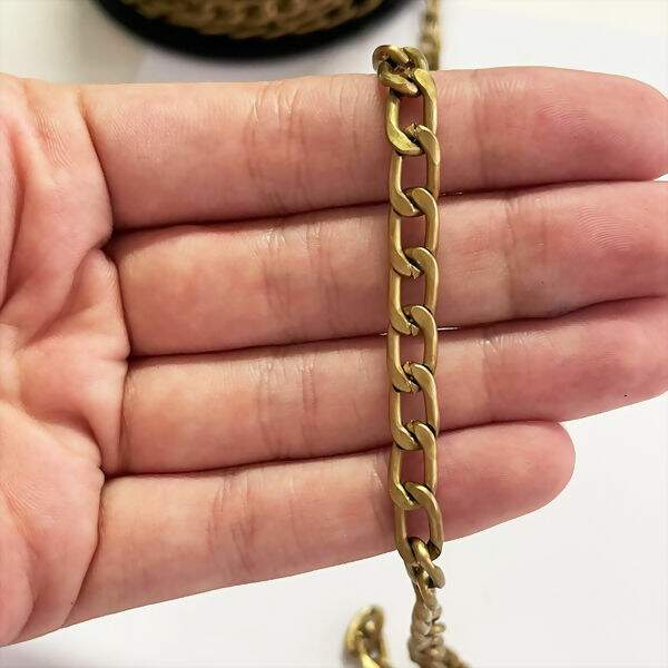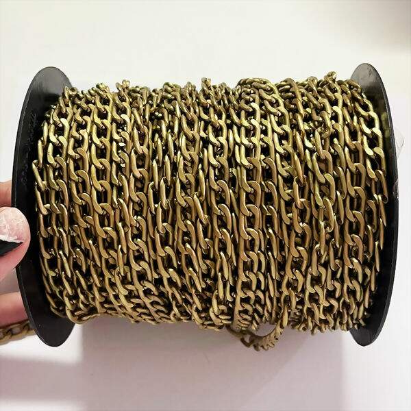 Descrição Corrente de Alumínio Cartier Lixada Ouro Velho 8x10mm - Por Metro