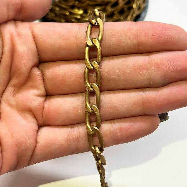 Descrição Corrente de Alumínio Cartier Lixada Ouro Velho 9x15mm - Por metro