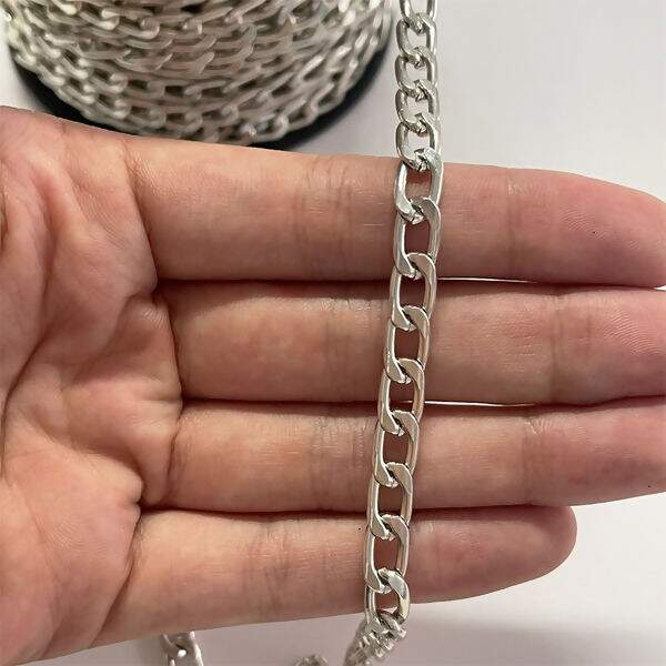 Descrição Corrente de Alumínio Cartier Lixada Prata 9x10mm - Por Metro