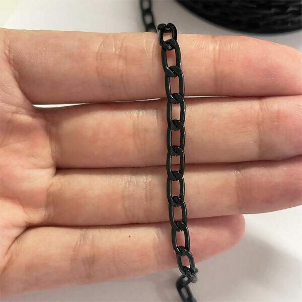 Corrente de Alumínio Cartier Lixada Preta 5x8mm - Por Metro