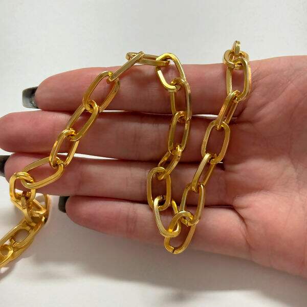 Descrição Corrente de Alumínio Dourada 10x15mm - Por metro