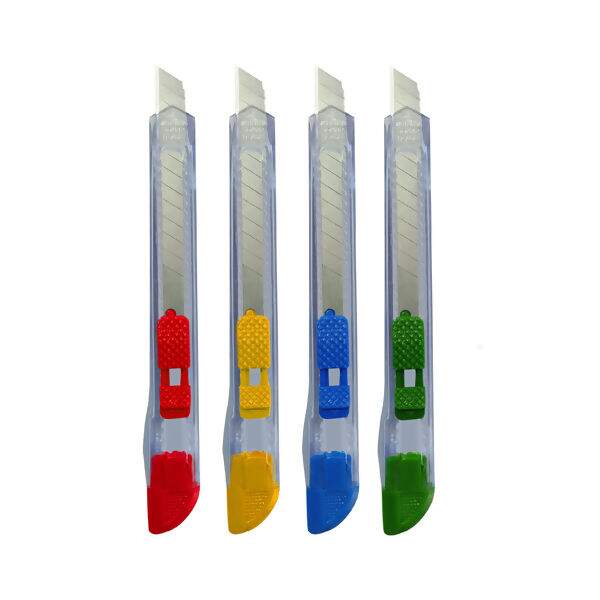 Estilete com lâmina estreita e corpo em acrílico resistente, ideal para uso artesanal, escolar e atividades que exigem maior precisão.