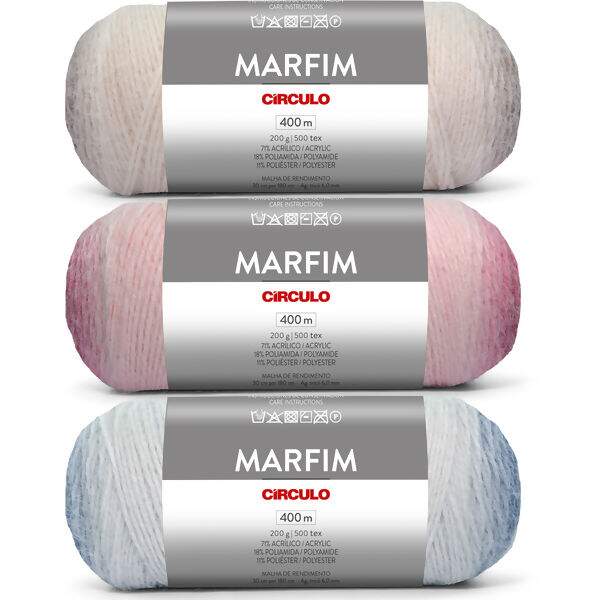 Marfim é sinônimo de sofisticação. Com cores em degradê deslumbrantes, toque cashmere e uma mistura especial de acrílico, poliamida e poliéster, o fio proporciona um visual elegante e um conforto excepcional. É perfeito para a confecção de peças únicas e sofisticadas.