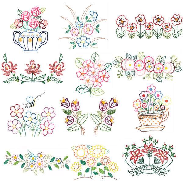 Descrição Kit de Pano de Prato Riscado 12 Unidades - Flores II