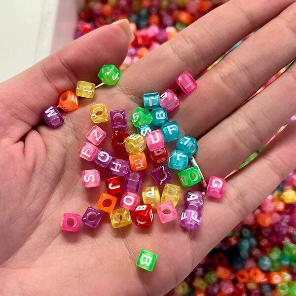 Letrinhas Coloridas Quadradas com furo passante - 45 g