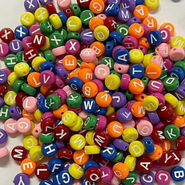 Detalhes Letrinhas fundo colorido com furo passante - 45 g