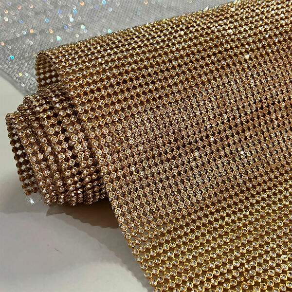 Descrição Manta de Strass Termocolante - Dourada 1.20 x 0,45 mt