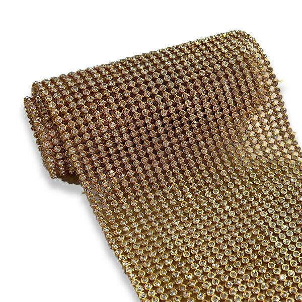 Descrição Manta de Strass Termocolante - Dourado 10 x 45 cm