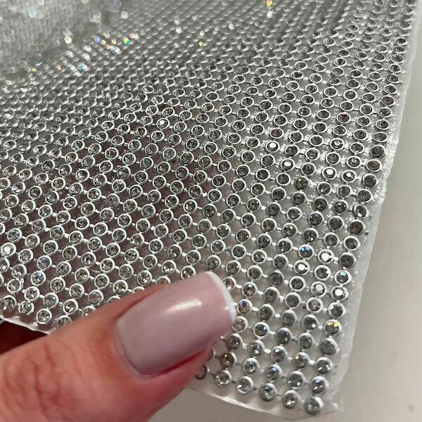 Descrição Manta de Strass Termocolante - Prata 1.20 x 0,45 mt