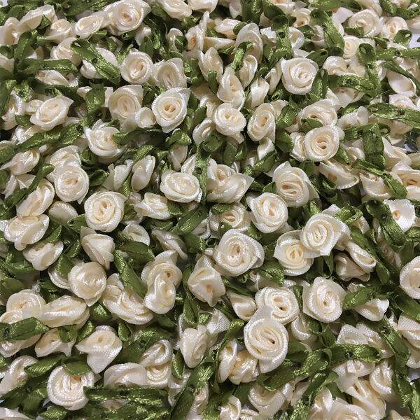 Mini Flor de Cetim com folha Creme - 50 unidades