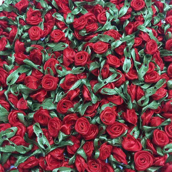 Descrição Mini Flor de Cetim com folha Vermelha - 50 unidades