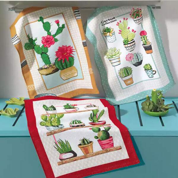Descrição Pano de Prato Felpudo Estampado Cactos - Dohler