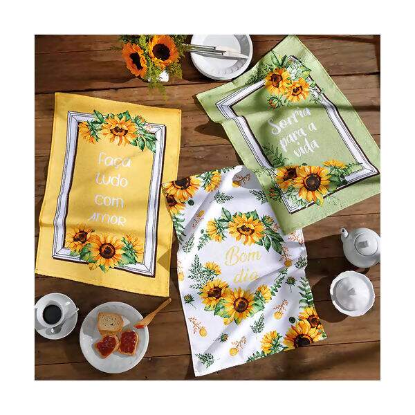 Pano de Prato Felpudo Estampado Girassol - Dohler