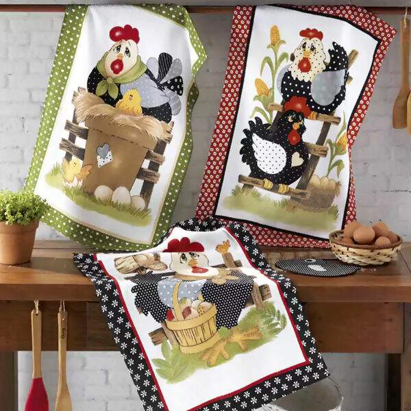 Descrição Pano de Prato Felpudo Prata Estampado - Galinhas - Döhler