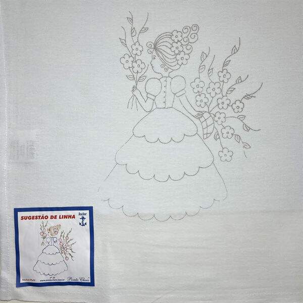 Pano de Prato Riscado para Bordar - Boneca Des.23