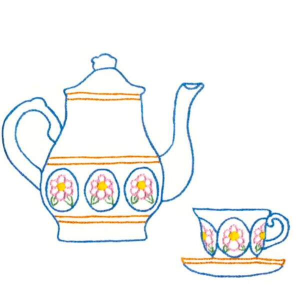 Pano de Prato Riscado para Bordar - Bule e Xicara Des.80
