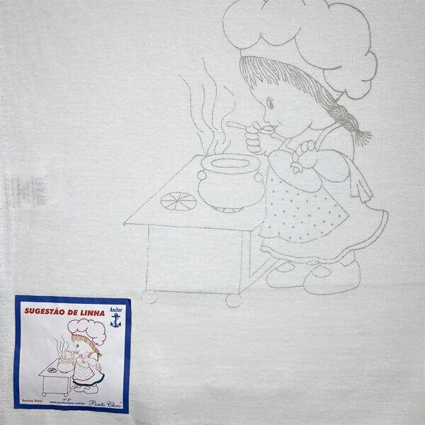 Descrição Pano de Prato Riscado para Bordar - Cozinheira Des.21
