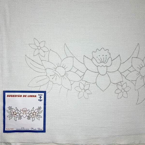 Pano de Prato Riscado para Bordar - Flor Des.11
