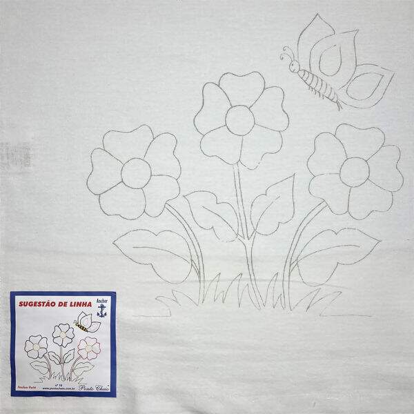 Descrição Pano de Prato Riscado para Bordar - Flor Des.16
