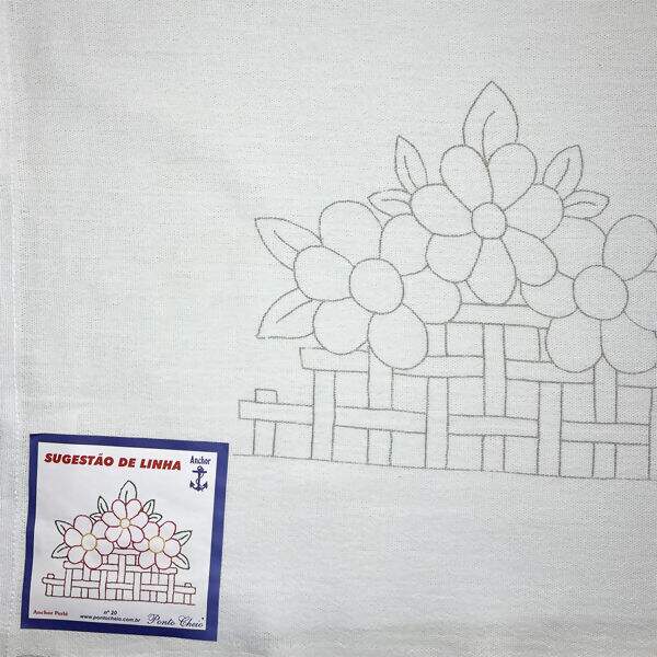 Descrição Pano de Prato Riscado para Bordar - Flores Des.20