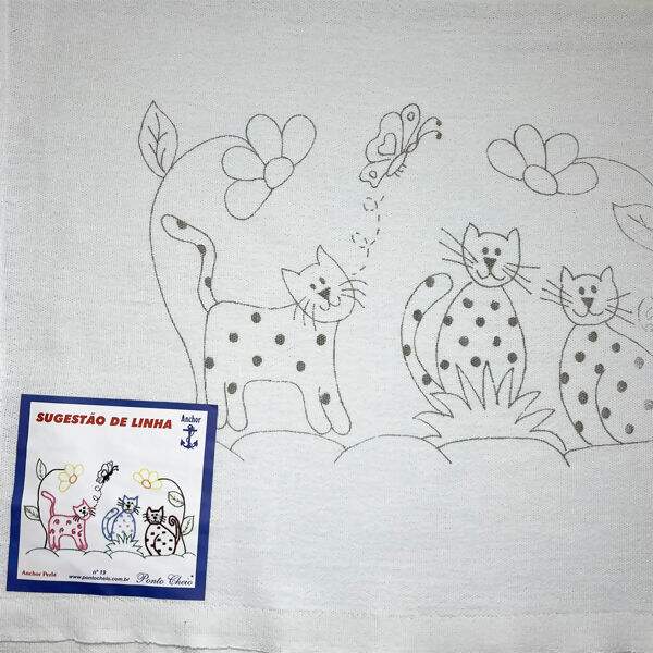Descrição Pano de Prato Riscado para Bordar - Gato Des.19