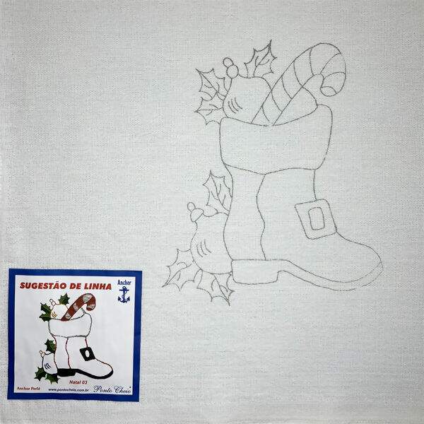 Descrição Pano de Prato Riscado para Bordar - Natal Des.03