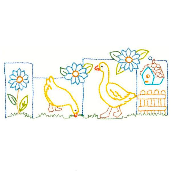 Pano de Prato Riscado para Bordar - Patos da Fazenda Des.79