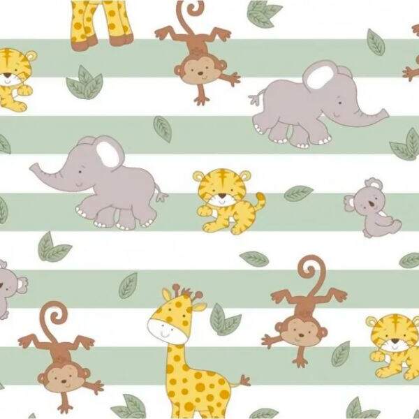 Descrição Tecido Estampado - Jungle Verde Menta cor 05 - Des.180649 - 0,50x1,50mt
