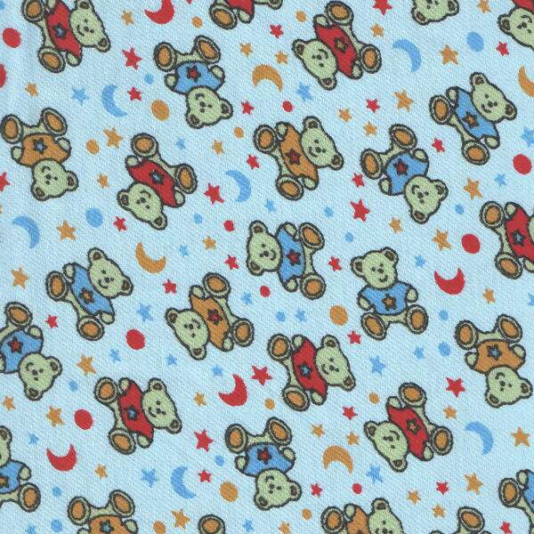 Descrição Tecido Flanela - Ursinho Fundo Azul - 1,00m x0,80cm