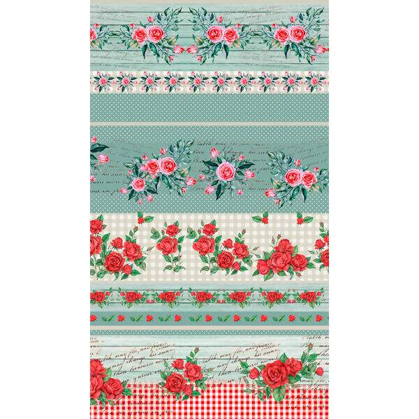 Tecido para Barrado Flores Cor E388 - Des.9017 - 0,55x1,50 mt