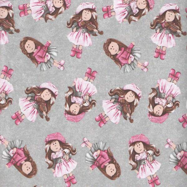 Tecido Estampado - Boneca Gigi Cinza Cor 6 - Des.180664 - 0,50x1,50mt