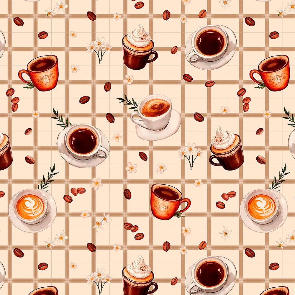 Tecido Tricoline Estampa de Café - 0,50x1,50mt